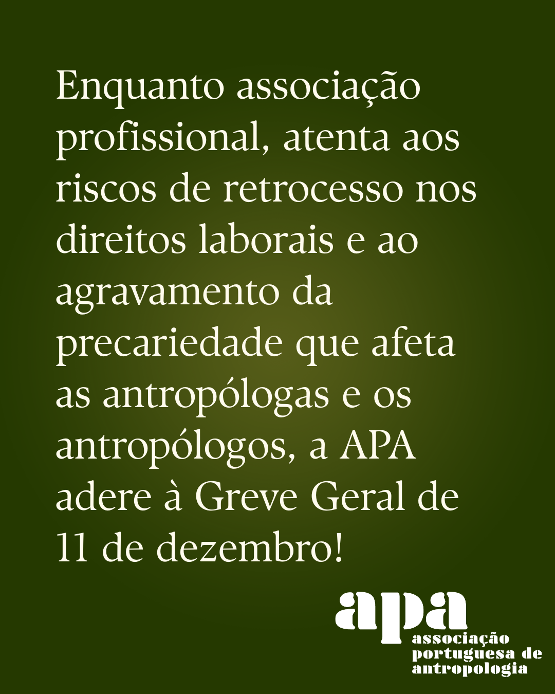 Published 10/12/2025 at 1080 × 1350 in A APA adere à Greve Geral.