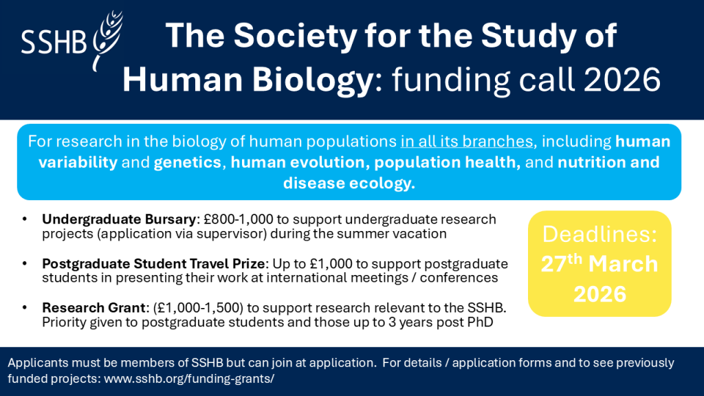 Para mais informações contactar m.i.o.varela-silva@lboro.ac.uk ou secretary@sshb.org